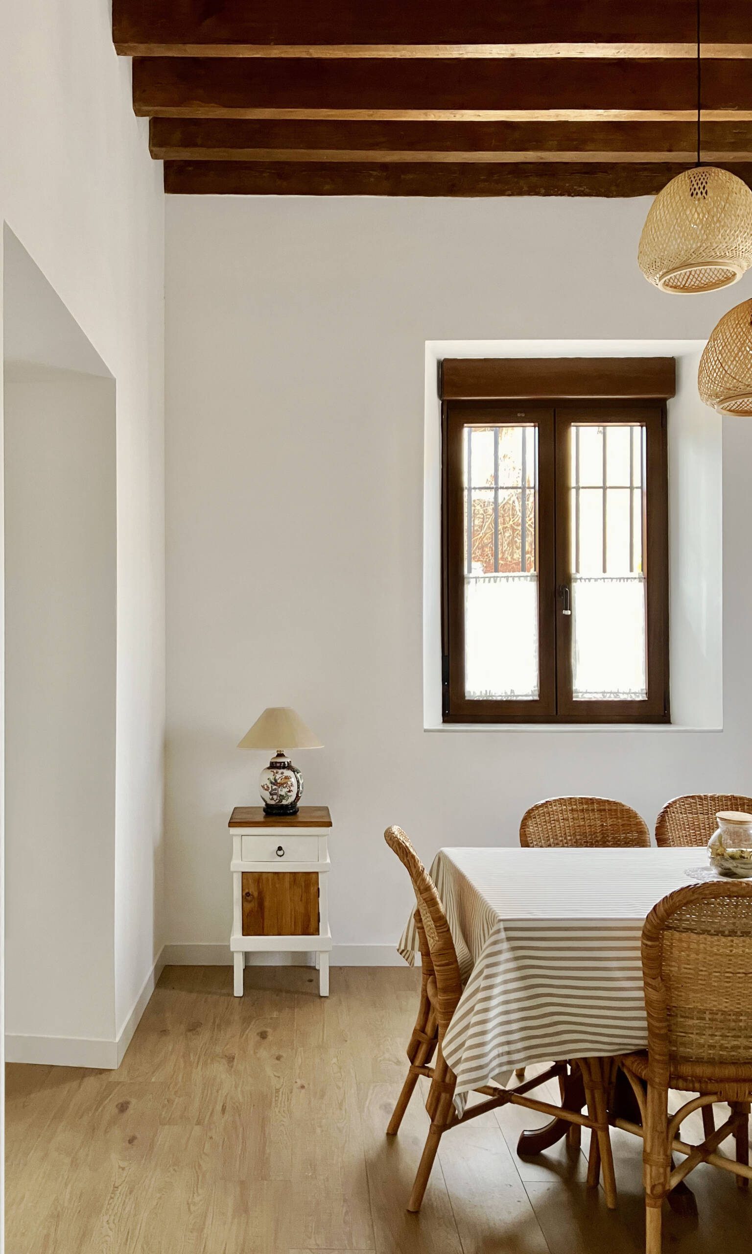 The project embraces the patio house typology, preserving this central void as the backbone of the home. To achieve this, special attention is given to the load-bearing wall structure surrounding the patio. These walls are maintained and enhanced, with most of the existing openings preserved. This simple strategy defines the essence of the project: a porous wall that creates diverse visual connections, enriching the experience of living in the house.
