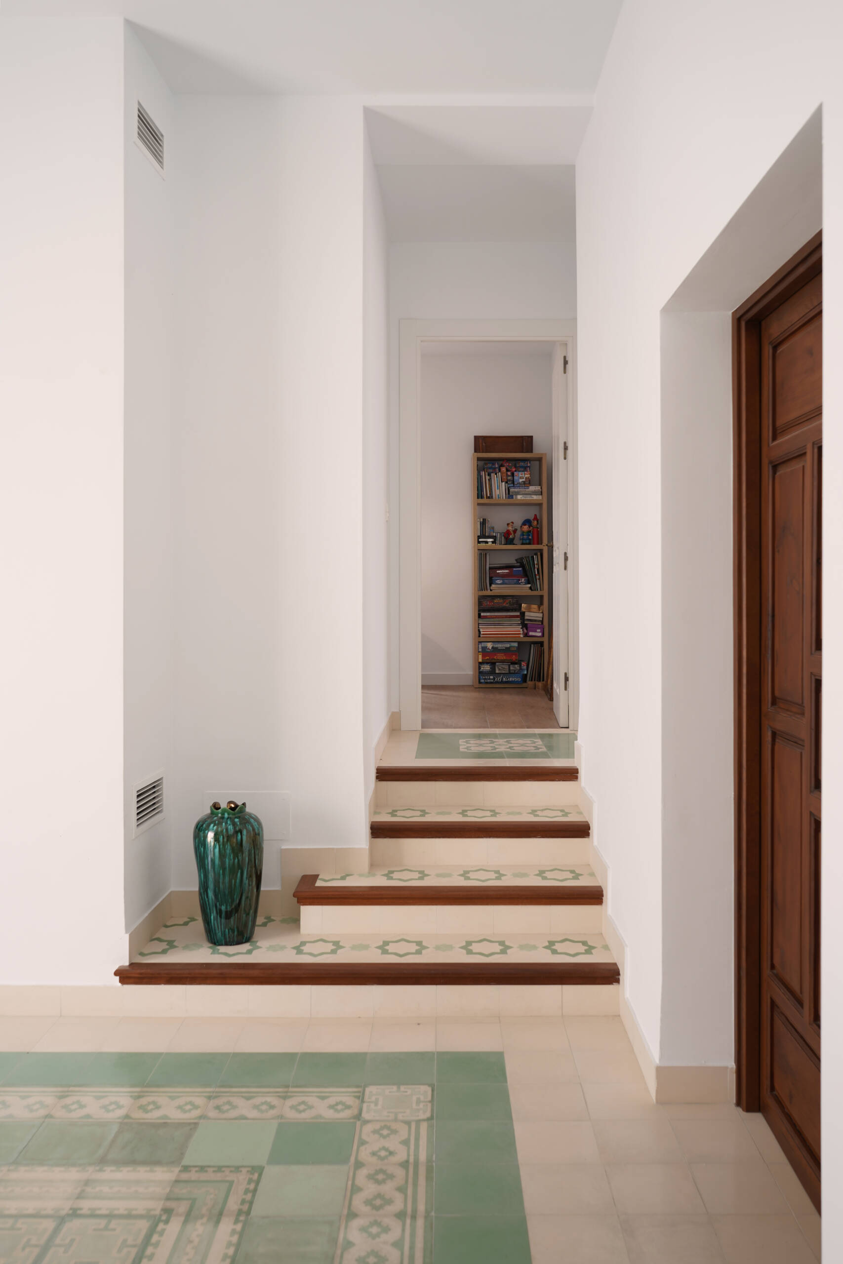El proyecto diseña una nueva forma de habitar el interior, acorde con la calidad del patio y teniéndolo siempre presente. Para ello se amplía la planta alta, se le da la altura necesaria para que toda la superficie sea verdaderamente útil. Esta planta se diseña como zona de descanso, el programa incluye dos dormitorios, dos baños y varios espacios polivalentes que eliminan los pasillos creando estancias concatenadas.